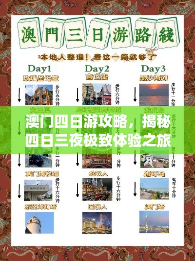 澳门是一个充满魅力的城市,无论是购物、美食、文化还是自然风光,都有丰富的旅游资源,四天三夜的旅程虽然短暂,但足以让你领略到澳门的独特魅力,希望这份攻略能帮助你更好地规划你的澳门之旅。